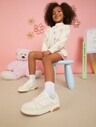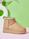 Mini mi #CozySteps Kids' Fabric Suede Beige & Animal-Friendly Fur Collar Elastic Back Strap Slip On Platform Clogs–Warm & Snug Style For Everyday Adventures