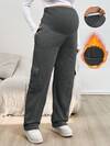 SHEIN Maternity Solid Color Waist Tie Pocket Wide Leg Loose Casual Pants