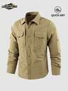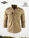 LEDUNTINO [Spring/Summer] Men's Fashion Casual Button-Down Outdoor Shirt, Sports, Solid, Cargo, Boyfriend Gift, Men's Long Sleeve Shirt For Spring/Autumn, Multi-Pocket, Lapel Shirt, Spring/Fall Tops For Men