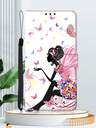 GLANDOTU Creative Colorful PU Leather Wallet Phone Case, Dreamy Butterfly Girl Design, Suitable For Samsung Galaxy And Other Brands, Features Dual Folding Edges, Card Slots, And Comes With A Lanyard.