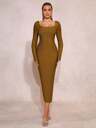 Modphy New Sexy Backless Bell Sleeve Contrast Color Fitted Long Bandage Dress, Elegant Women's Formal Evening Gown For Birthday Party, Formal Occasion, Wedding Guest Dress