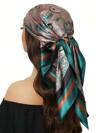 1pc 90*90cm Fashionable UV Protection Bandanna/Headscarf, Versatile For Outdoor Activities, Air Conditioning Rooms, Classic Print Design Thin Scarf, Unisex, Colorful (Blue, Green)